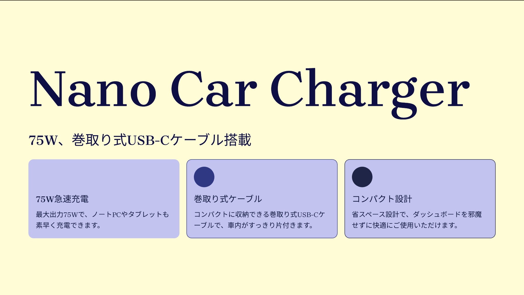 Nano Car Charger (75W, 巻取り式 USB-Cケーブル)
