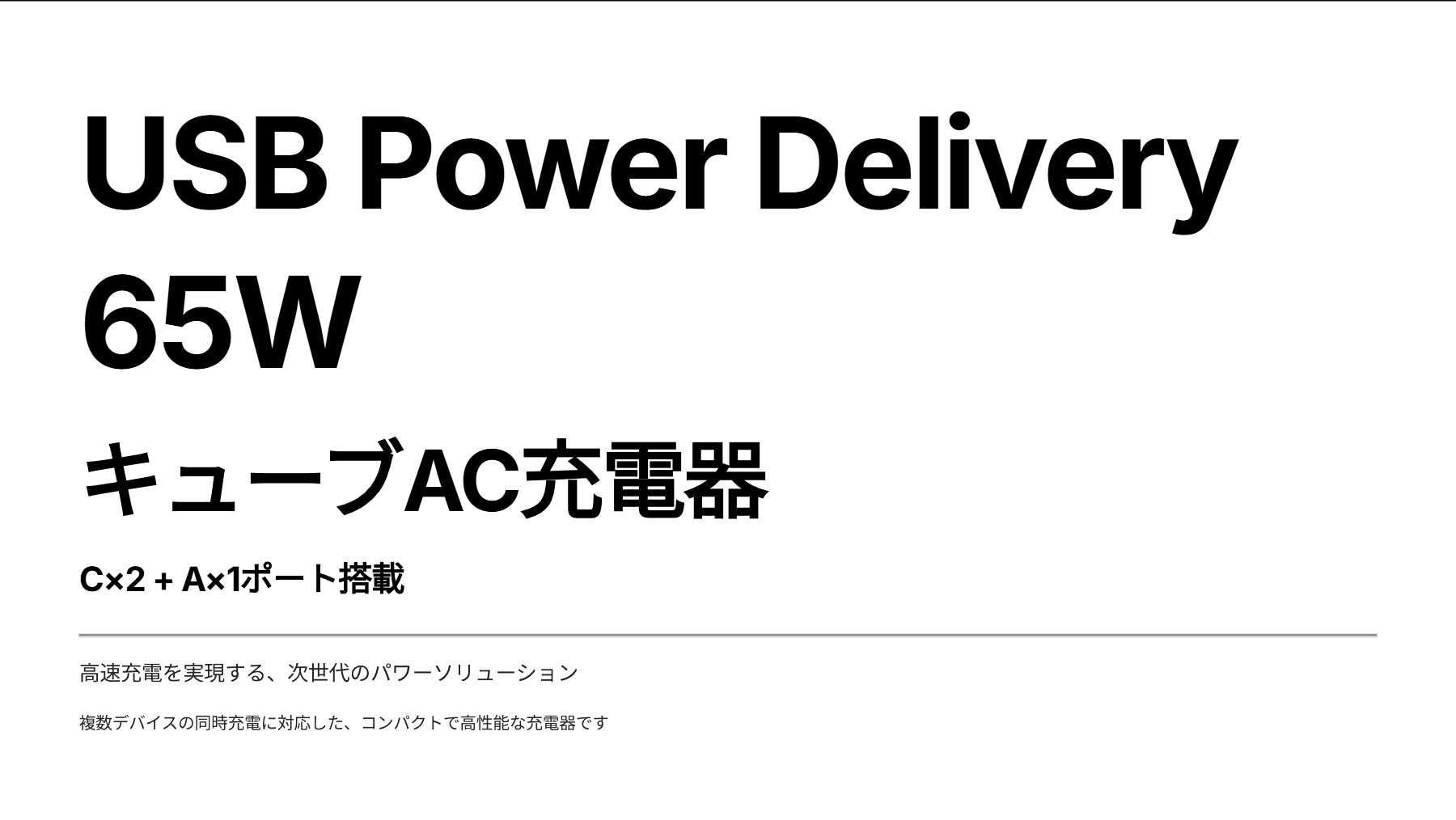 USB Power Delivery 65W キューブAC充電器(C×2+A×1)