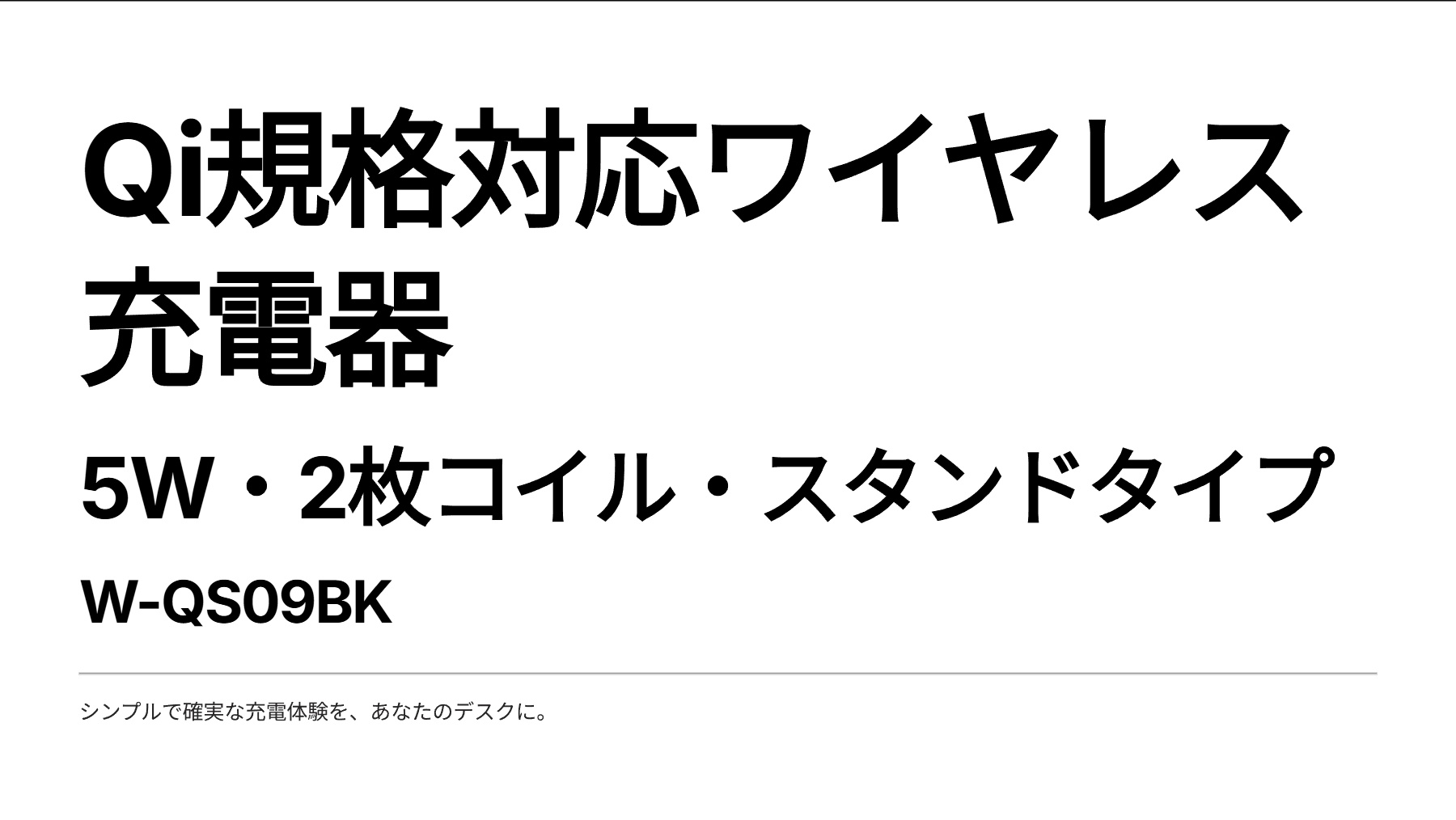 Qi規格対応ワイヤレス充電器(5W・2枚コイル・スタンドタイプ) W-QS09BK