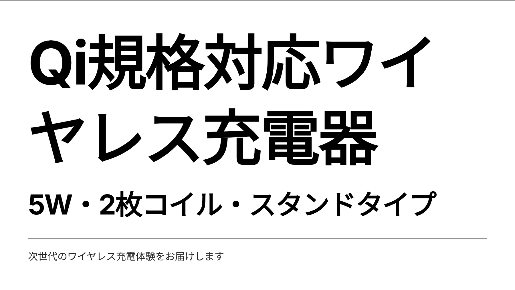 Qi規格対応ワイヤレス充電器(5W・2枚コイル・スタンドタイプ)