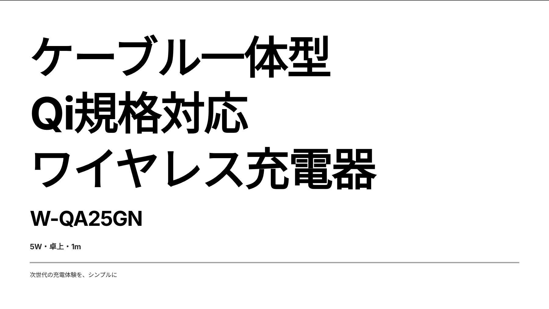 ケーブル一体型 Qi規格対応ワイヤレス充電器(5W・卓上・1m) W-QA25GN