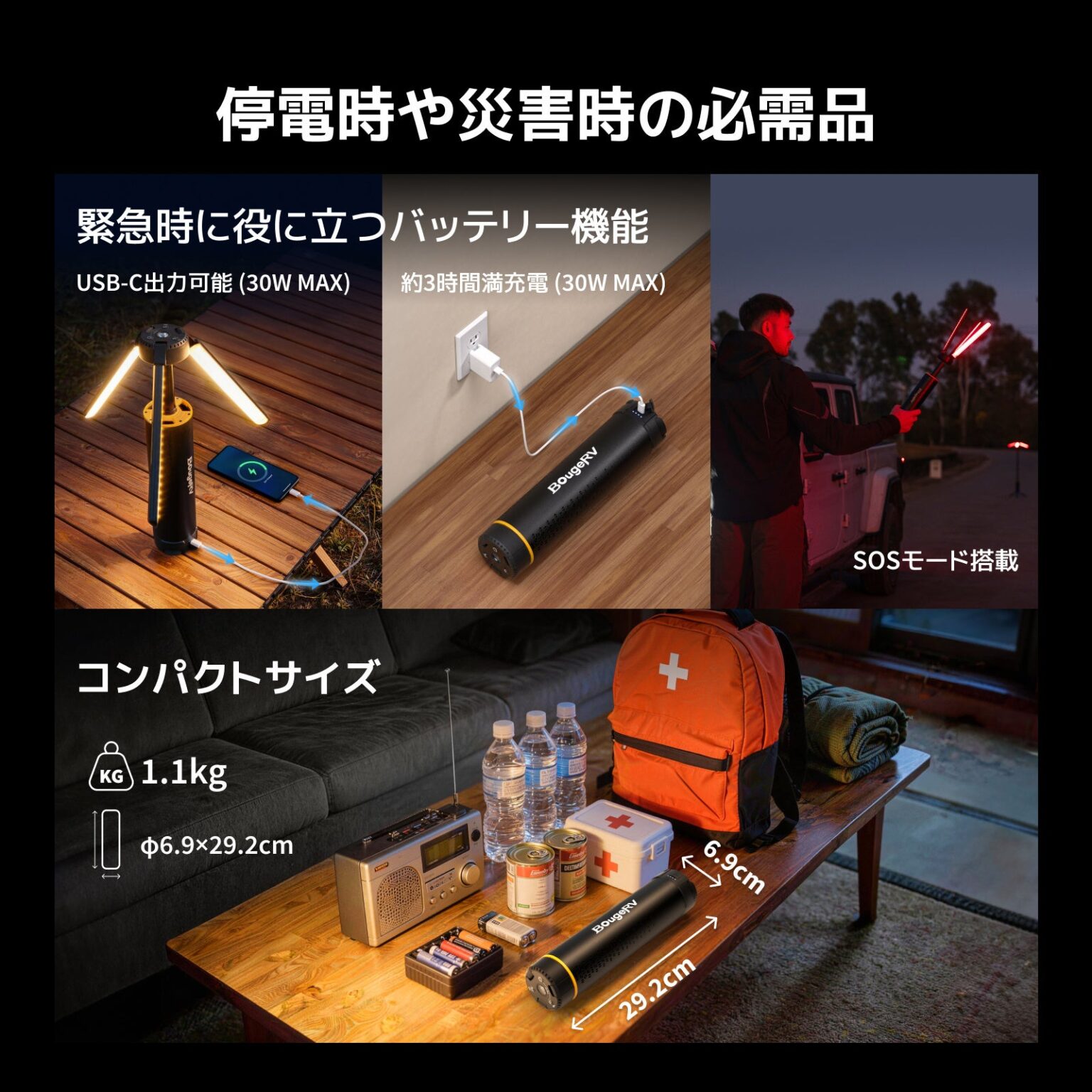「BougeRV T1ランタン」には、以下のような特徴があります。