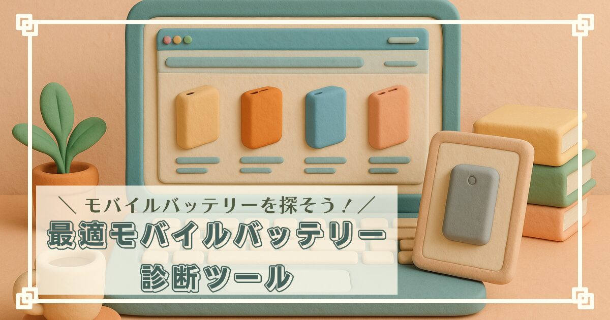 あなたにぴったりのモバイルバッテリーが見つかる!無料診断ツールで、モバイルバッテリー選びの悩みを解決。最適な一台を見つけよう。
